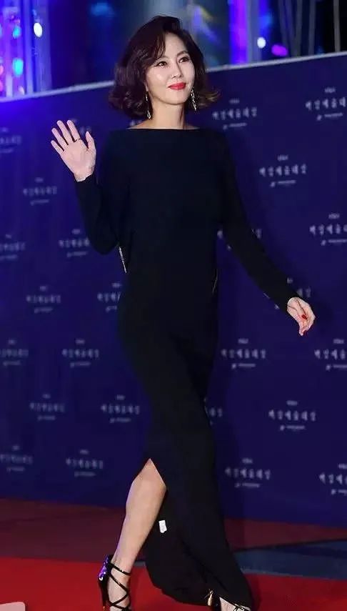 金南珠拿过的奖项数不胜数,虽然结婚的她,在事业上还是没有放弃过,而且做的比结婚前还要优秀,下图照片中,金南珠穿了一件黑色长袖分叉紧身长裙,虽然一身黑但是还是没有掩盖住她自身的光芒。