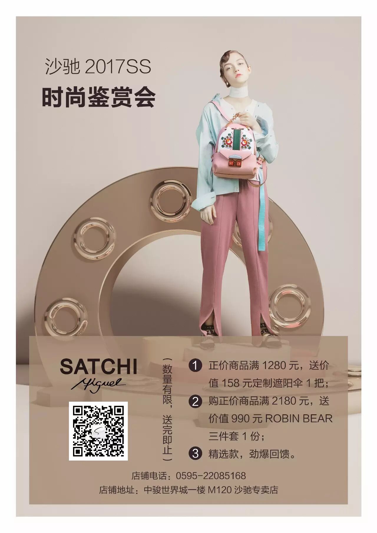 沙驰(中骏世界店)2017SS新品鉴赏会火热进行中,亲爱的沙迷们欢迎到店选购,更多精彩活动,请至店详询。