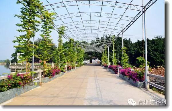 新村与旧村之间一条宽阔的大道横跨在池塘上,两边种满鲜花。