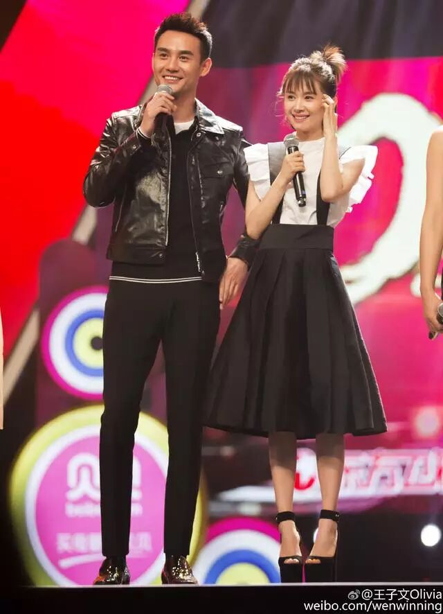 宣传期间和王凯同框,凯凯十分帅气,王子文穿黑白搭很经典时髦,背带裙更显可爱俏皮。