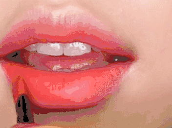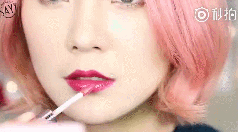 Step 5:将唇釉涂满唇部,下唇可以略微往外画一点,显得唇部更饱满。