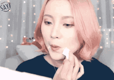 Step 1:先提亮嘴唇周围的肤色,用遮瑕液沿着嘴角向下画两道,用海绵推开。