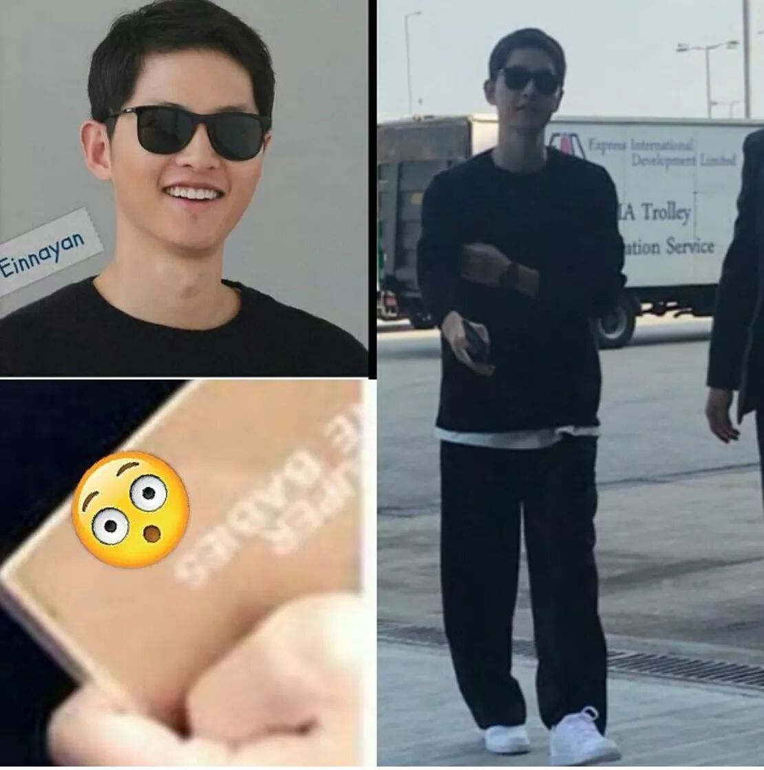 还有网友眼尖发现,在香港机场与粉丝道别的宋仲基,手中拿着一本书,书名暗藏玄机↓