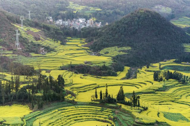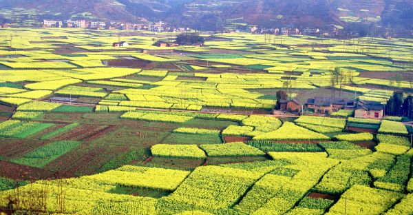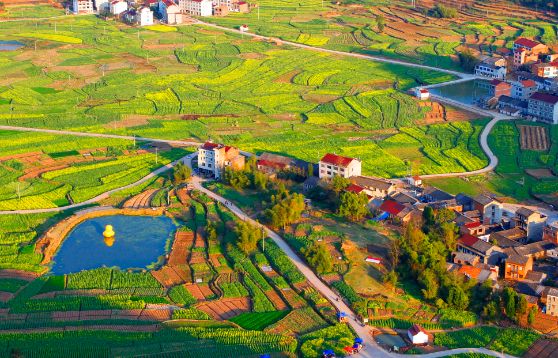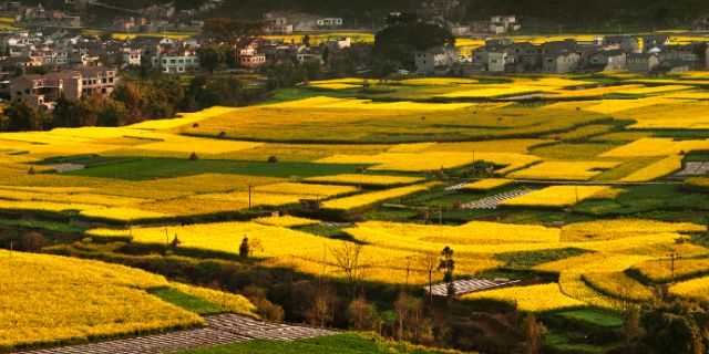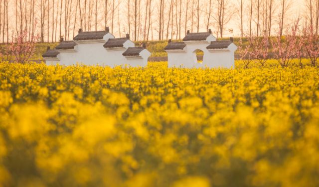 春天,万亩油菜花竞相开放漫山遍野,花香袭人,沁人心脾。漫步于乡村的小路,穿过溪河的石拱桥,油菜花盛开于农舍间,返璞归真的神韵尽在其中。