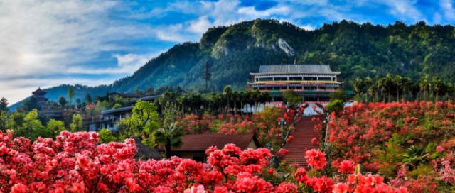 映山红大观园坐落于安徽省岳西县的大别山上,这个被群山怀抱的观园在海拔900多米的高度上让人有一种天上人间的神奇之感,一旦站在这里,满目的都是青翠,随处可见的映山红香气扑鼻,沁人心脾。