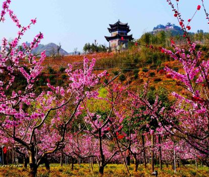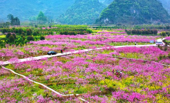 广西桂林市灵川县海洋乡春赏桃花景区,以6万亩桃树种植基地为依托,以桃花观赏为主题,黄金旅游时间为3月中旬-4月上旬。