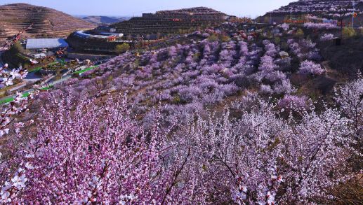 柳林县昌盛农场龙头山景区内绵延千亩的杏花林、依山而生的山桃花,层层叠叠的山花颜色渐变,由浅入深,粉得可爱,红得娇艳。开得最好的当属杏花。娇滴滴的杏花早已含苞待放,青翠嫩绿的草植也探出头渐渐发芽,榆叶梅、玉兰、碧桃等各色山花也不甘示弱,纷纷绽放出最美的色彩,花瓣随风飘落在小溪边、山路旁,处处可见可触。