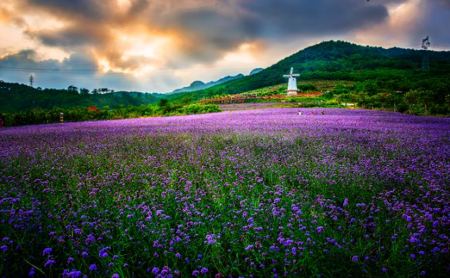 紫云花汐薰衣草庄园坐落于大连金州新区向应街道土门子村小黑山东南麓,薰衣草从4月份种植,花期将从七八月份一直持续到10月底,如今已经形成近千亩的薰衣草花田。在薰衣草庄园周围,还将扩展到其他芳香类花卉,如洋甘菊、驱蚊草、迷迭香等,配以其他颜色的花带,有向日葵、观赏油菜、小丽花、郁金香等,打造一片一望无际、五彩斑斓的充满视觉冲击力的异彩空间。