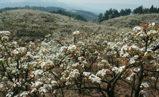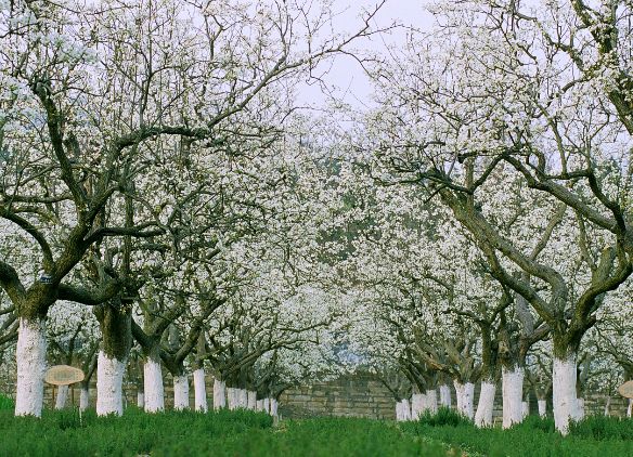 甘肃皋兰县什川镇万亩梨园有“中国第一古梨园”之称,连片梨园面积达12000余亩,树龄大多在三百年以上。梨树纳天地之灵气,采日月之精华,至今依然枝繁叶茂,郁郁葱葱。园内梨树千姿百态,景象十分壮观,堪称“中国一绝”。