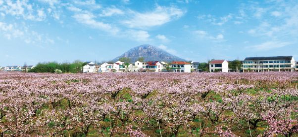 阳山镇桃源花海位于江苏省无锡市惠山区。阳山镇境内的安阳山是华东地区唯一的火山岩层,有距今一点四亿年前的中酸性火山碎屑融合而成,周边土壤肥沃,非常有利于水蜜桃的生长。