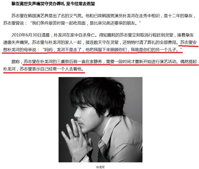 但近期,小编被一个苏志燮的消息所感动!前几天,是已故韩星朴龙河(也有翻译朴容夏)的忌日,这一天苏志燮仍是去墓地祭扫,哀悼友人。
