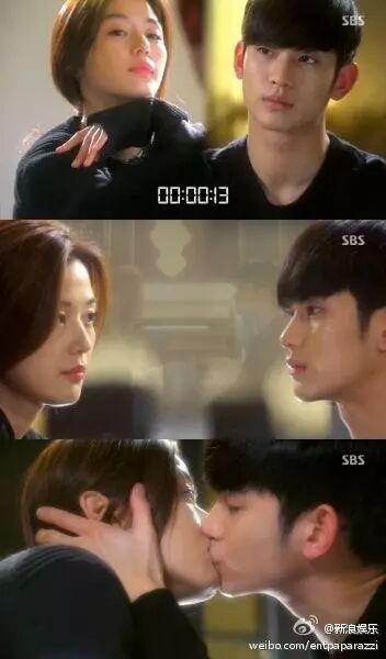 《来自星星的你》是全智贤的婚后作品,但剧中与金秀贤的吻戏,她照拍不误,虽然她也承认老公吃醋了: