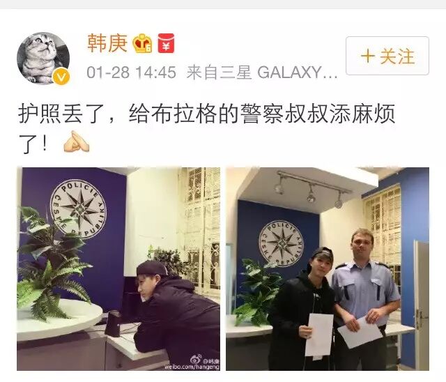 说起纯真,wuli韩三岁名不虚传!昨天下午, 他微博自曝在布拉格丢失护照,称:“给布拉格的警察叔叔添麻烦了!”