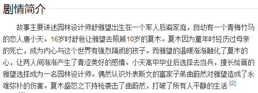 长相俊美但不善言辞的夏木,从小就失去了双亲,直到十岁的他遇到十六岁的舒雅望后,才慢慢打开心扉,并渐渐爱上了雅望。
