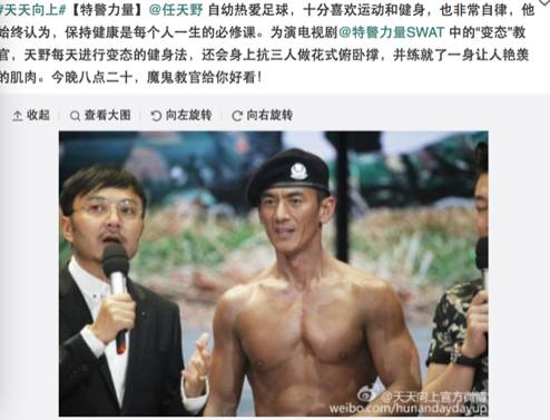 他的微博十条有八条都在说健身,或者健身相关的事。有时也会展示他的健身照…