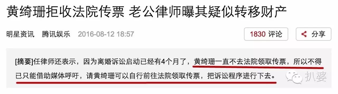 在拍到妻子婚内出轨开房照片的8天后,向法院起诉离婚。但黄绮珊一直拒收法院传票。来划一下重点:
