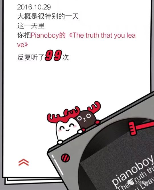 第一首毫无疑义是Pianoboy的《The Truth That You Leave》,作为除了《Summer》以外听得最多的纯音乐。这首歌被沾染上无法言喻的浓烈情绪,因而占据着每份回忆BGM的地位,据网易云音乐app不完全统计——