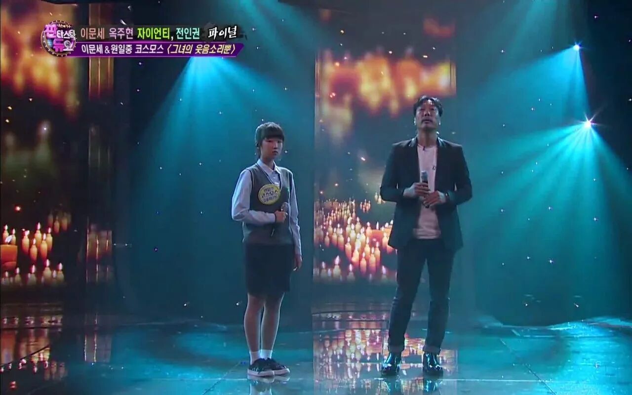 「绝美现场!15岁少女金允熙与57岁情歌王李文世对唱《只有她的笑声》,萝莉与大叔的搭配总藏着太多动人又伤感的故事:
