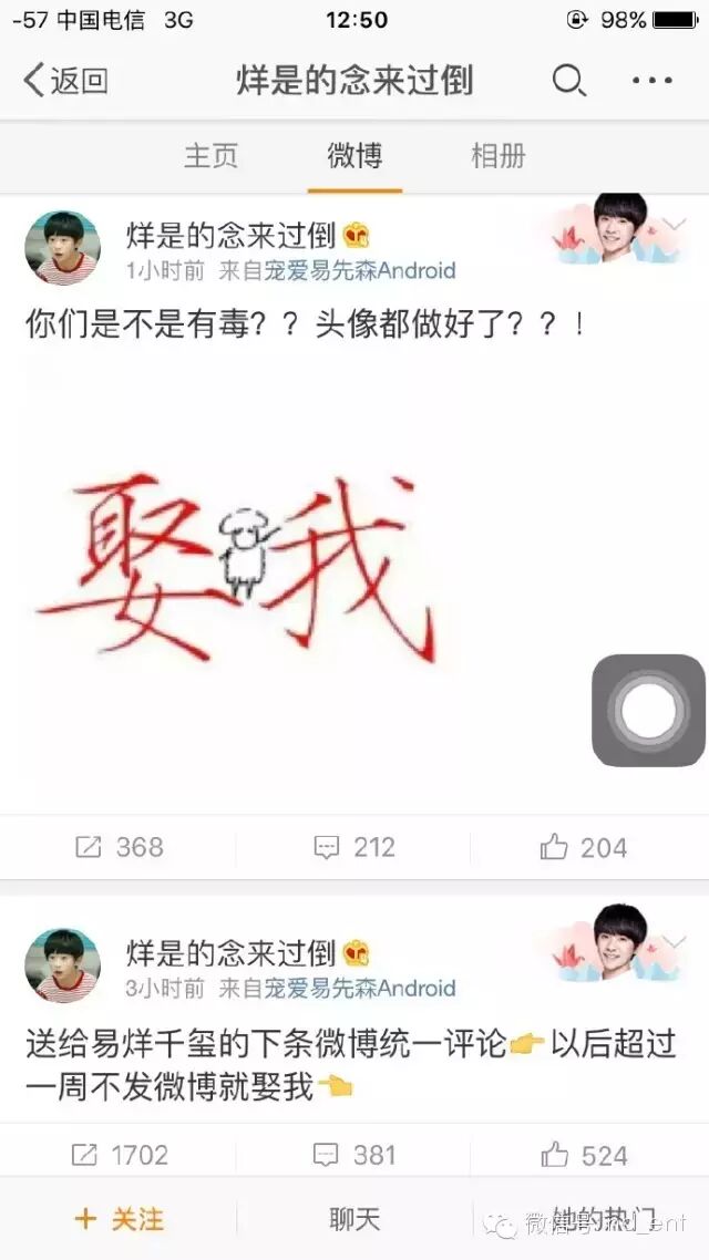 仲基撩妹撩得欢,陈晓、陈伟霆、吴亦凡却被粉丝撩,都... 南都全娱乐 港台男星 2016-04-08 13:50:11 459 创作不易,用心坚持,欢迎请BaGua喝几杯爱心咖啡!打赏并支持本文 打赏并删除本文 南都全娱乐(微信号:nd_ent)原创作品,未经许可禁止转载。本文仅代表作者观点,不代表南都立场近一个月来,什么话题最火?当然是wuli仲基欧巴,在见识了他抢手机、壁咚、吻掉口红……360度无死角的撩妹技能后,迷妹们的心都是这样的↓然而,你见过明星撩妹,可你见过撩明星的粉丝吗?在山的那边海的那边有这样一群很red很不甘寂寞的粉丝,以调戏明星为己任,花式撩爱豆,打滚求关注,看到他们相爱相杀的全过程,宝宝表示,自己果然太年轻了!头一个中枪的是陈晓,作为出演过高湛、林平之、杨过的古装美男,他本来应该享受着“男神”的光环,但是!他的粉丝,给他冠上了“晓贱人”称号,此时陈晓的内心应该是↓可作为蒸煮,陈晓在被粉丝调戏了八百次后也终于承认了这个称号,称不喜欢但听着亲切,听!着!亲!切!!!宝宝心疼你!除了外号,陈晓更被粉丝嫌弃的是他的自拍技术,别家爱豆发自拍粉丝都欢天喜地迷妹脸,陈晓发自拍,粉丝大呼:丑拒!狗带!不知道会吓坏小孩子嘛?!!!不知道会吓跑新粉丝吗?!!!我们辛辛苦苦帮你卖安利吸的粉,一张自拍就能掉光,你行的!!!于是有粉丝发了这样的微博↓甚至给他做了黑图表情包↓不许发自拍,是粉丝们最后的温柔。而带着黑图刷评论也是他们的日常参加活动时,别家粉丝举着灯牌和美美的海报,陈晓家的粉丝又以清奇的画风取胜了,肆无忌惮撩汉,被撩到的陈晓发了这样一篇心碎的微博……如此明目张胆地调戏,嘲笑他长胖,调侃他褶子多,宝宝只想说一句:我的天哪!【小岳岳脸】话说,“陈圆圆”你这么被粉丝赤裸裸地调戏,你姑姑知道吗?如果大家以为这样就算撩汉啦,那你就太out了,往下翻你就会嗅到到粉丝那跳出银河系的撩汉技能~吴三桂与陈圆圆,这位粉丝你很懂嘛!历史不错嘛!想对陈晓说,眼神不好不是你的错,反应太慢被撩到就是你的不对了。在被撩这件事上,心里苦的不止陈晓,wuli千玺宝宝也表示中了一枪,心里很苦。前两天,千玺宝宝出席了某音乐盛典,粉丝先用这样羞耻度爆表的灯牌求关注↓又把他见到偶像Bigbang的痴汉+迷弟脸做成动图,在微博热搜挂了一天,千玺表示,自己是拒绝的!在工作日记里,wuli千玺也特地提出了抗议,称自己每看一次心里就累一次【委屈脸】而作为现如今行程多到爆的当红组合成员,千玺发微博的频率也是少得可怜。你以为粉丝只会傻傻等待吗?千纸鹤告诉你,爱上一个不发微博的爱豆,寂寞的粉丝总有一百种方法调戏他,在评论里集体作诗深情呼唤~甚至集体把头像换成“娶我”!天呐!警察蜀黍,这里有一群女流氓出没,wuli千玺还只是个孩子,千纸鹤们不要污,要优雅!其实,会玩的粉丝早在千玺中考闭关的时候就想到了调戏大招,在经历了长达两个月爱豆不发微博的相思之苦后,相约表示要等千总出关后一起去评论“您好,因您的账号存在异常,该评论无法显示”。按照千纸鹤的想法,易烊千玺打开微博的一刹那应该是这个表情↓于是,终于等到千总出关发微博后,他们得意地、步伐一致地来到评论底留下了这样整齐的评论。实施完大计的他们发现!妈呀!千玺不仅发了微博!还发了秒拍!真是阿姨们的好宝宝!而兴奋过后点视频的他们发现,什么!点不动!我试一次!我再试一次!为什么还是没有反应!兴奋过度的阿姨再次仔细看那条微博才发现,自己被耍了!那根本不是视频!就是一张图片!!!甚至图上还有水印!点击播放的符号也是画!上!去!的!调戏不成反被撩,千玺“大总攻”的江湖称号果然不是白来的!而说到撩汉技术哪家强,吴亦凡表示自家的粉丝也很会撩!话说吴亦凡虽说现在单身,却有一颗想生女儿的闪闪红心,在各种场合都表示过以后想要小公主。比如再比如这么狠的话都说的出来,吴亦凡不怕将来的老婆吃醋吗?23333333而他的粉丝也抓住了他的痛点,可劲撩!花式撩!微博评论里亲妈心操碎:不穿秋裤生不了女儿!机场接机挂横幅:生儿生女都一样!说到自己特别会撩,粉丝比自己还会撩是什么感受?那必须要问等等陈伟霆!当等等口误时,他们给予毫不留情的打击↓当等等举行粉丝见面会与众多女生合影时,心里更是醋海波澜,要离婚10秒,那什么,你们不要了就让给我好吗?对于他被亲侄女嫌弃这件事也是幸灾乐祸,表示:请跟隔壁吴亦凡学学!告诉等等,你们还是爱他的好吗?最后,宝宝恳请各位粉丝看在爱豆们每天被撩拨无力还手的份上,请!继!续!!!不!要!停!!!撰文:一只迷妹编辑:刘卫华 实习生 董雯玮 创作不易,用心坚持,欢迎请BaGua喝几杯爱心咖啡!打赏并支持本文 打赏并删除本文 感谢您的支持鼓励,我会继续努力的!文章地址:用户邮箱:打赏金额:USDT 请输入数字点击”去打赏“,即可进行打赏支持本文章哦 陈伟霆 About the Author 南都全娱乐 功能介绍:《南方都市报》娱乐版微信账号.有态度、负责地对待娱乐,有情怀、趣味盎然地提供独家新闻. 官方认证:南方都市报社 Related Posts 潘粤明瘦了,他的新剧口碑爆了 2022-09-28 21:00:28 赵丽颖演不了「狠角色」 2021-12-09 20:45:40 想不通,冯小刚竟然输给郭敬明? 2021-07-15 21:50:57 连欧阳震华都救不了这剧? 2021-04-30 20:19:16 演员田海蓉:永远不要顾忌你的年龄,热爱艺术的人永远年轻 2021-01-08 20:45:17 发表评论