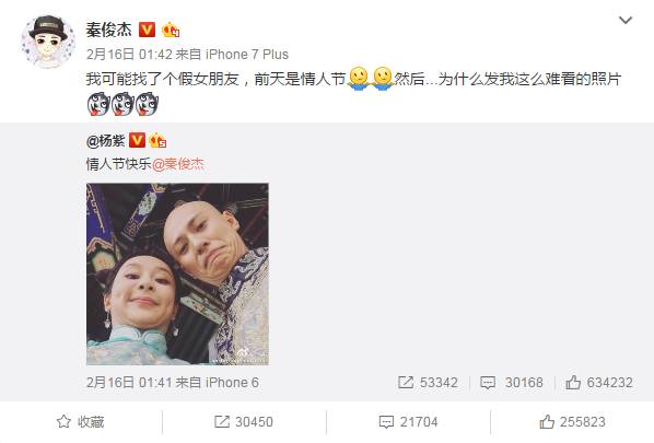 杨紫公开恋情,没有在明星扎堆秀恩爱的情人节,反而选在了情人节两天后,发的还是两人的丑照,画风看上去跟普通秀恩爱似乎不一样,但是朋友们请注意,糖衣炮弹包裹的都是糖,这甜度可是一点不差啊。恭喜小雪啦~
