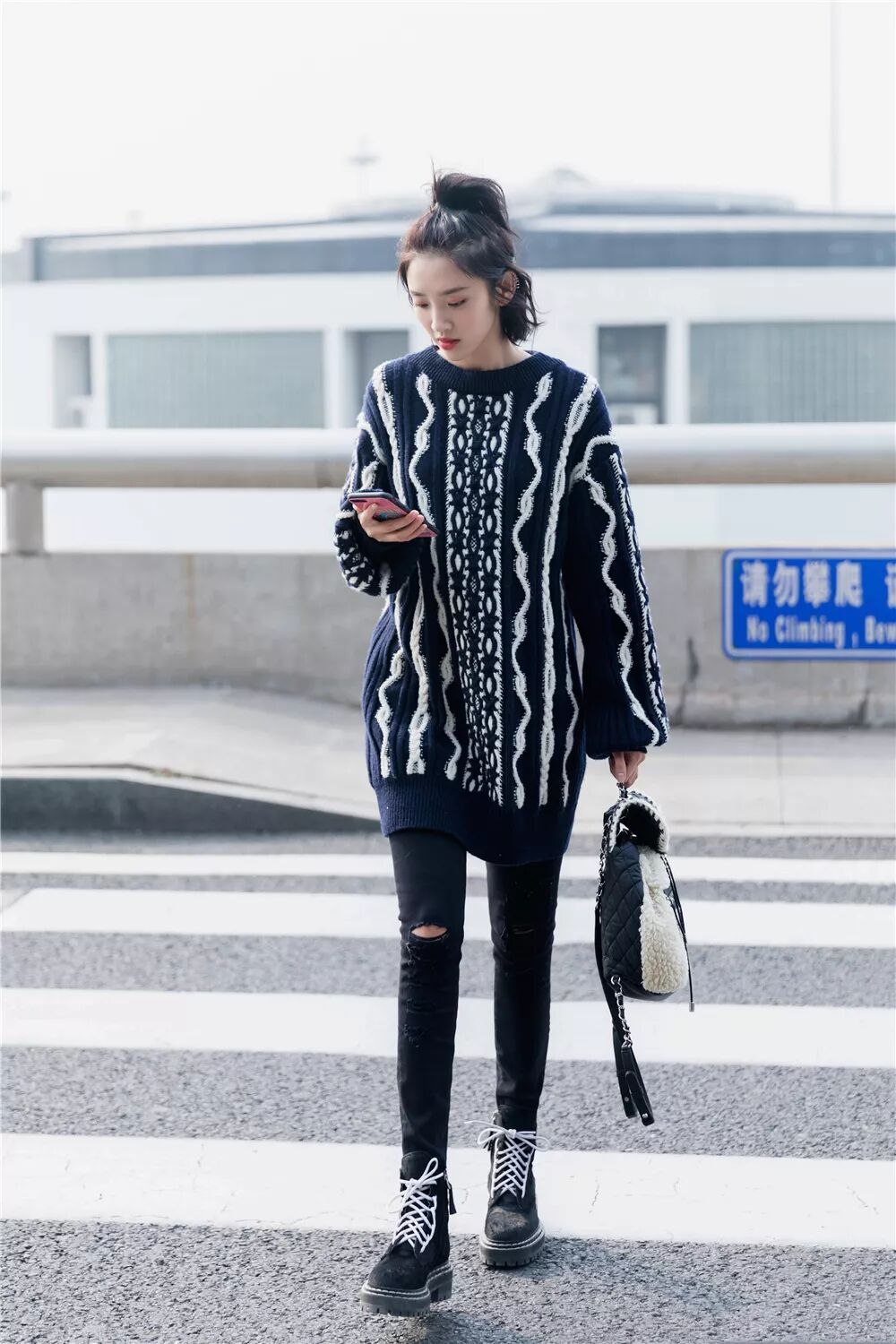 转眼到今年冬天,本以为唐艺昕该换双鞋了,在今年的私服中我又再一次看到了这双鞋!来靠你了唐艺昕的秋冬搭配也离不开这双鞋啊。一件长款包臀毛衣加黑色的破洞紧身长裤,短发扎成一个小揪揪也是十分元气俏皮~宽松的毛衣与紧身裤的对比也是衬的腿更细了~