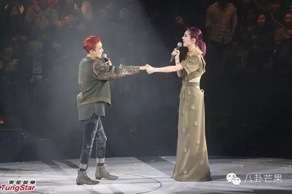 在演唱会上,杨千嬅请来了多年的竞争对手容祖儿做嘉宾,这样的场面在前些年是难以想象的,双方粉丝势不两立。但现在都释怀了,杨千嬅含泪感谢工作路上有容祖儿这样优秀的对手。