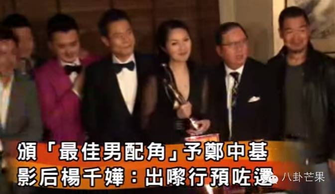 更戏剧的是,这届金像奖杨千嬅为郑中基颁“最佳男配角”,二人罕见同台,略有尴尬。