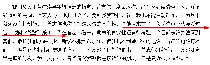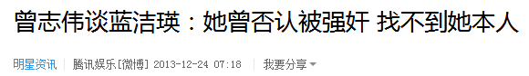 2013年在一次采访中,曾志伟声称蓝洁瑛在另一段采访中否认接受过(爆料被强奸)的采访。似乎是在否认强奸的真实性。