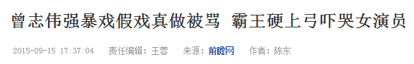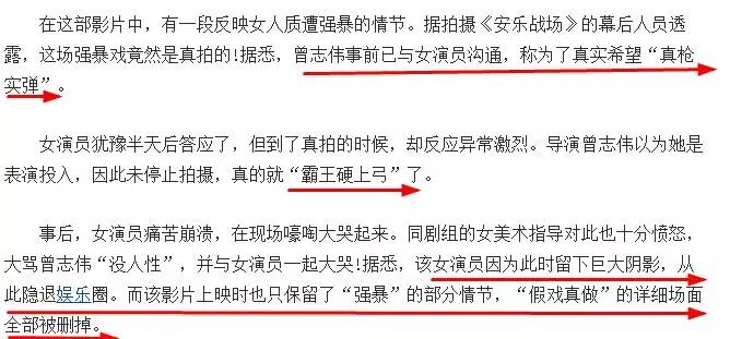 不仅如此,早在2015年就有报道称,上世纪八十年代末,曾志伟在自导自演的一部战争电影中对女演员假戏真作,霸王硬上弓。
