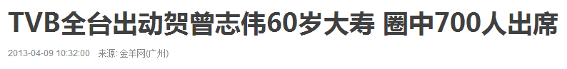 2013年曾志伟60大寿时,TVB更是全台出动。张学友、梁家辉、钟镇涛等好友都出席为其祝寿。