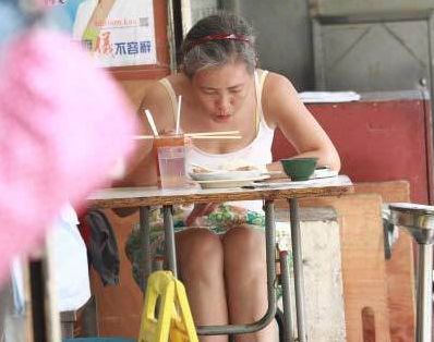 现在的蓝洁瑛,不仅头发散乱,驼背,因为患子宫瘤,她的小腹还明显肿大。