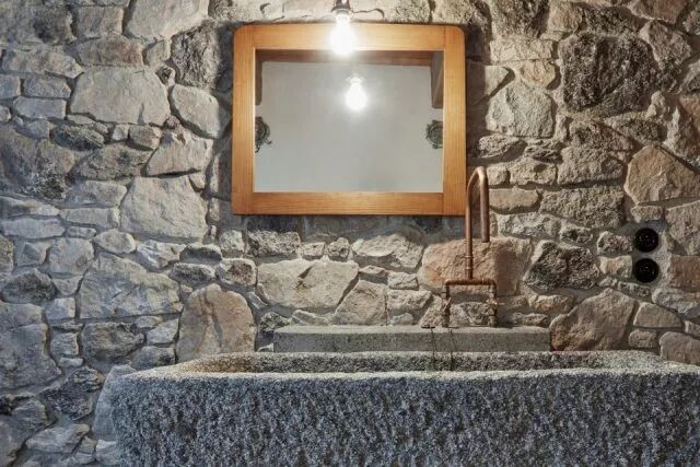 混凝土墙面替代原本的石墙,内设楼梯和桑拿房