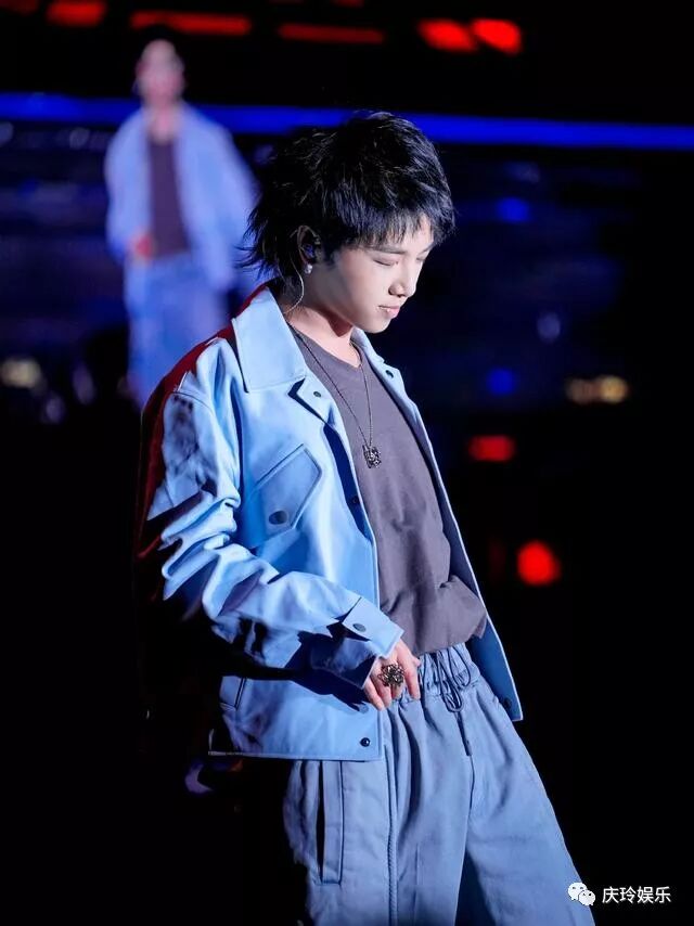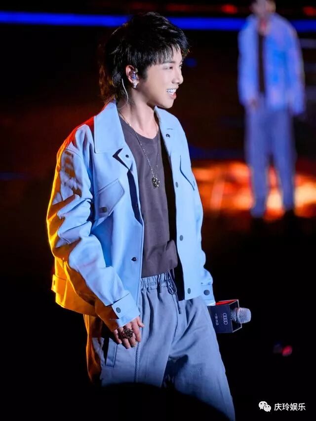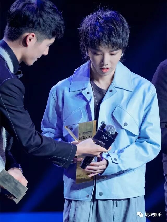 上台领奖的时候又是一个造型,两套的风格相差还是挺大的,不过都很好看啊。一个偏向于成熟一个偏向于休闲青春,皮质的蓝色外套非常有质感,多尝试一下各种色彩搭配也是很有必要的,不试你怎么知道哪种适合哪种不适合你啊,年轻人不要太过于拘束了。