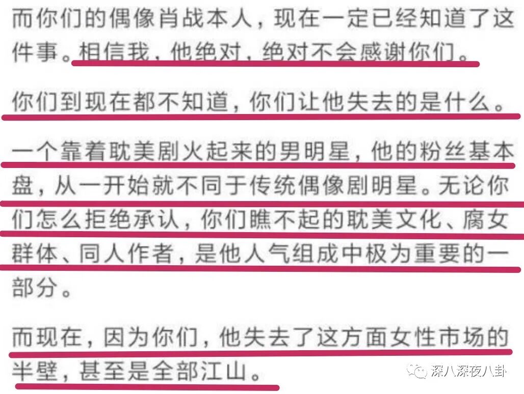 肖战的粉丝出离的愤怒:我家哥哥这么好,你们为什么要女化他还要污名化他?为什么世界上会有人写这样肮脏的东西,为什么会有平台去刊载这些恶心的文字?于是,叔能忍婶儿也不忍了,他们,行动了!