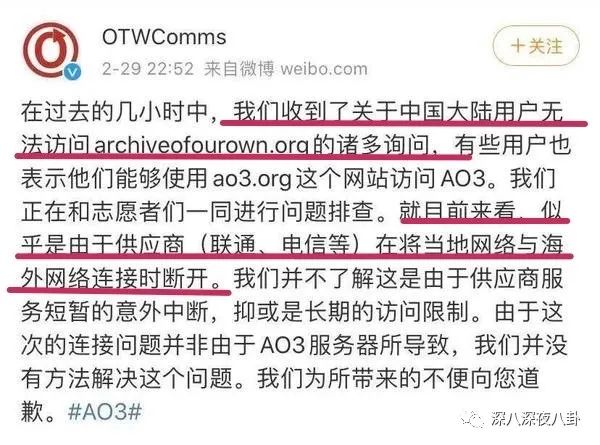 而这,却成了全网逆战爆发的开始。也许老福特与A03的遭遇,真的是“3.1净网行动” 的产物,但,肖战粉曾高调要“举报”这两个网站也是事实。你杀没杀伯仁,伯仁都因你而死,而死了的“伯仁”,却是无数人二次元精神世界的栖息地。对老福特和AO3,他们发誓寸土不让