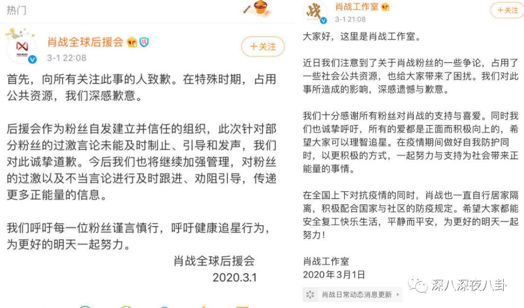 几天的你来我往,互相折腾,甩大招,肖战粉丝团方终于认了怂。粉丝团道歉,工作室道歉。虽然都是语气软绵绵的,但,好歹姿态是做出来了