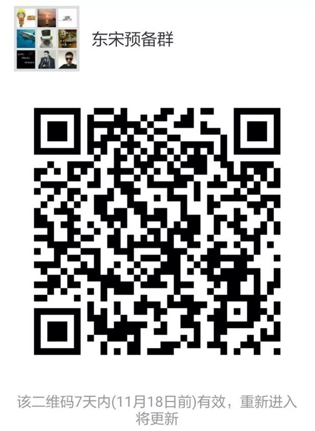 要成为东宋国民,永远不晚,对东宋小说创作、世界观设定、美术呈现有兴趣的,欢迎加入东宋预备群中,经征文、美术、设定等试炼后,即修成金花,受邀参与东宋正式群中。请扫描如下二维码。特别提醒:入群后即请做个人介绍,否则视为僵尸粉清群。