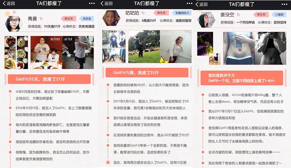 每次西姐坚持不下去,想要放弃的时候,就会看看GetFit上其他小伙伴的健身成果,看着人家从小胖妞完美逆袭成女神之后,自己瞬间又动力满满,运动力MAX。