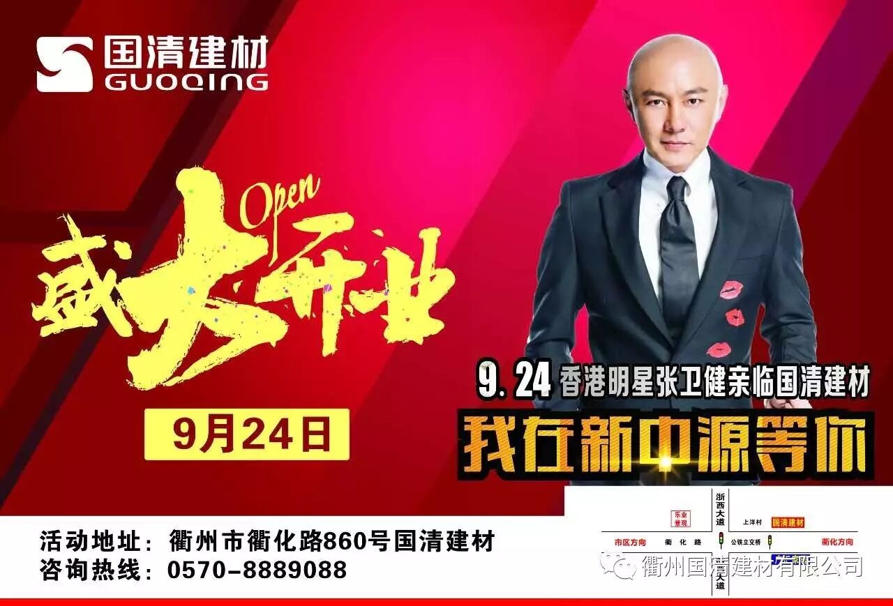 9月24号张卫健亲临衢州,助力国清建材开业。