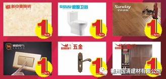 活动期间,凡下定2个品牌,各品牌下定10000元,即可在国清建材馆抢购单品牌1元产品。