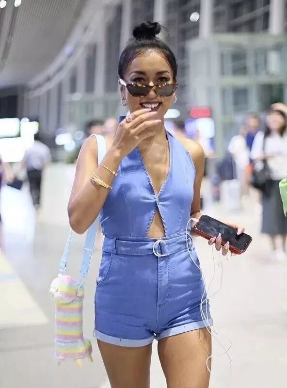 在这次的机场穿搭中,吉克隽逸的出镜同样给人眼前一亮的效果。一套蓝色的连体衣,上边是吊带的背心设计,下边是基础的长短裤款式。能看出来,吉克隽逸对自己身材管理很到位,同时也能很自信地展露。