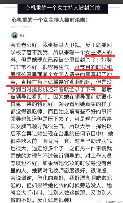 平时在领导面前是乖乖小白兔,私下却脾气大,对工作人员态度不好,人前一套人后一套,这简直就是职场典型的白莲花嘛!透过这事例,也可管中窥豹,看到电视台内明争暗斗的冰山一角,好一出职场版“甄嬛传”。