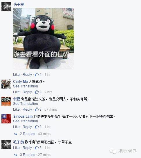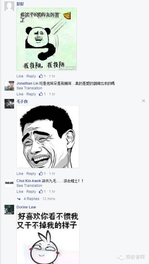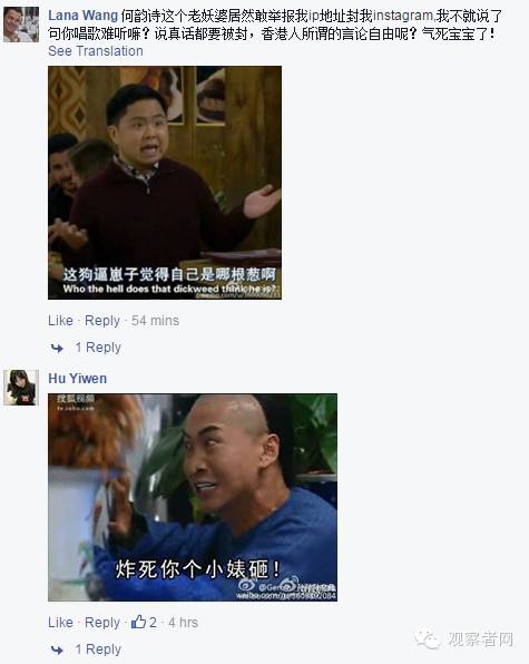 何韵诗Facebook评论区截图