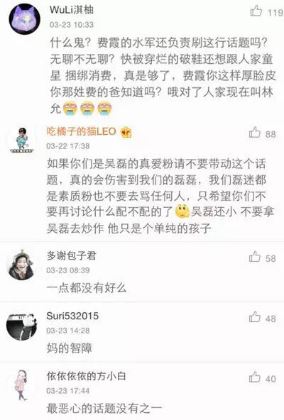 然后在和吴磊搭档的情况下,拽拽的说:“我希望搭档是尹正,我喜欢耿直的人。”这不是间接说wuli小吴磊不耿直吗。不耿直就不耿直吧,节目播出没多久,就有空降话题#吴磊林允配一脸#上热搜,更莫名其妙的是还有一堆人在刷话题。