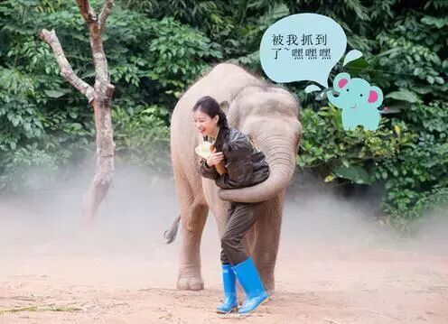 连大象也爱用大鼻子抱着她,向她表达爱意。