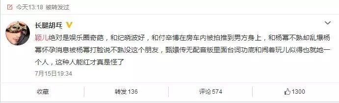 更有甚者说,颖儿公司一方面说颖儿低调,一方面撇清跟付辛博的关系,这还叫低调?之前插足吴佩慈婚姻的事怎么不低调啊?发布杨幂假怀孕的时候怎么不低调了?