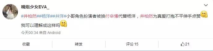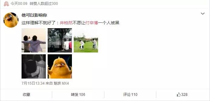 就在网友都感叹“长这么帅也劈腿,一点都不符合丑男才是渣的定律”的同时,小编惊喜地发现此爆料微博被付辛博曾经的好兄弟井柏然点赞。
