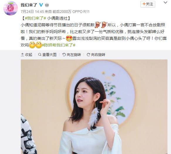 ▲《我们来了》节目组最近官方宣布,陈妍希作为嘉宾之一会参加节目第二季的拍摄。