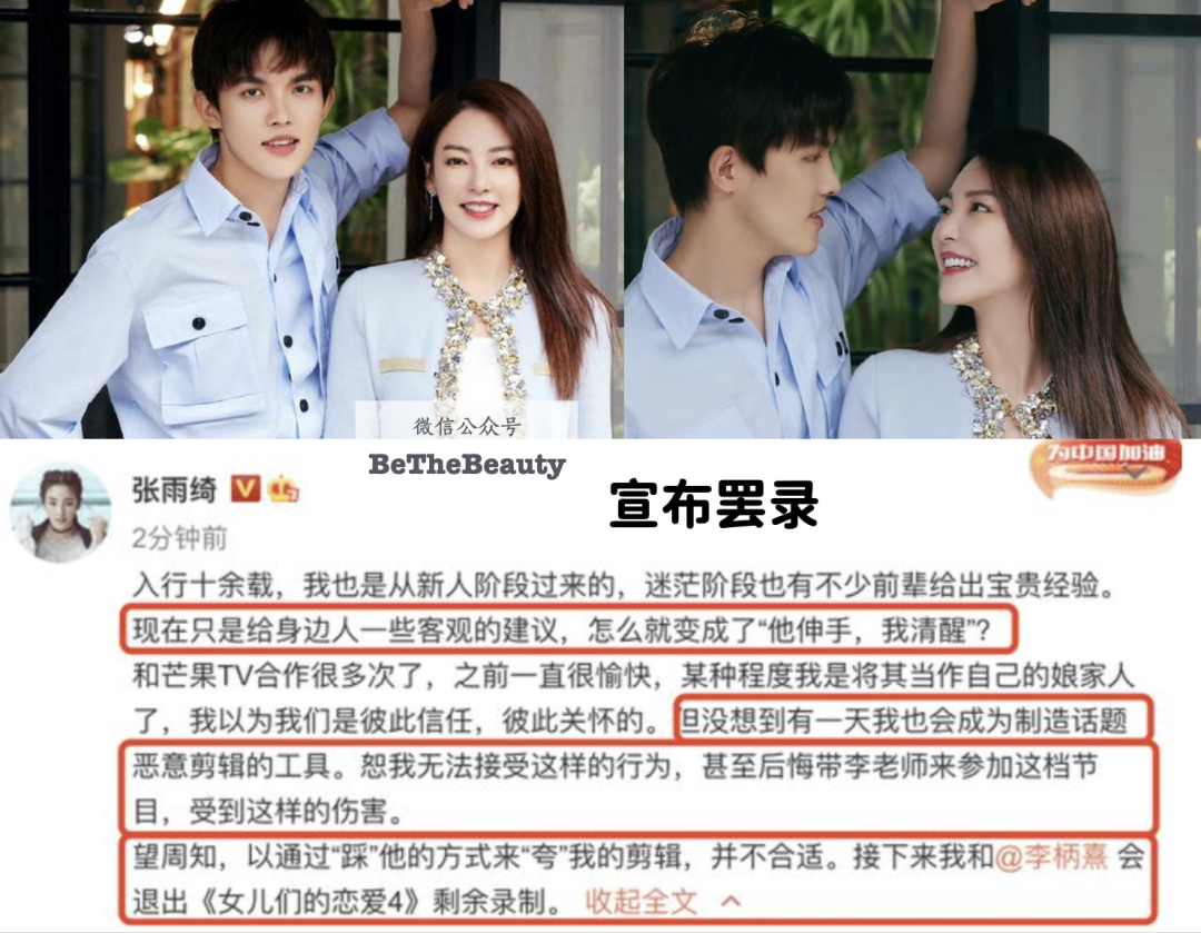 再比如,就是跟李柄熹恋爱,怒怼老朋友芒果节目组后退出录制: