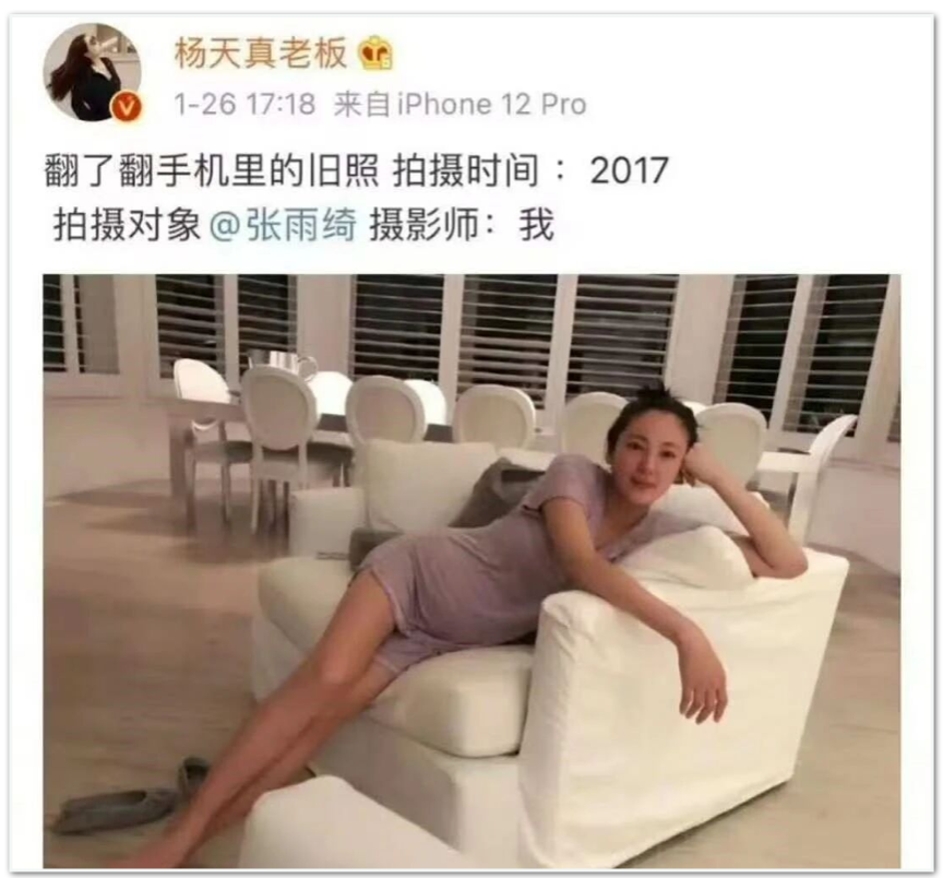 21年爽子被锤代孕那会,其实张雨绮也被曝光,但当时没实锤,又被杨天真辟谣,所以没啥水花: